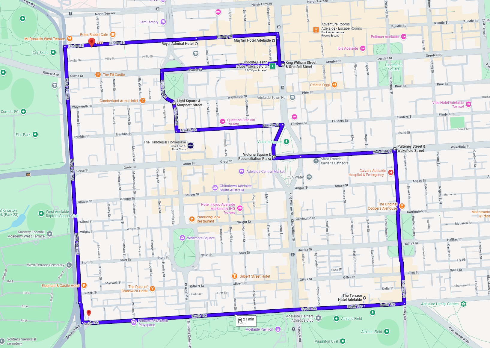 Left at Hindley Street to West Terrace